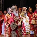 Крестный ход начался после Божественной литургии. Главные события Царских дней возглавил Святейший Патриарх Московский и всея Руси Кирилл, и сонм архиереев Православных Церквей.