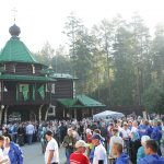 Около семи часов утра колонна крестного хода во главе со Святейшим Патриархом Московским и всея Руси Кириллом достигла монастыря святых Царственных страстотерпцев на Ганиной яме. Братия обители встречала крестоходцев колокольным звоном.