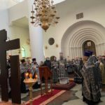 Согласно уставу, богослужение началось с чтения 3, 6, 9 часов и чина изобразительных, а далее была совершена Великая вечерня, переходящая в чинопоследование литургии. После сугубой ектении Владыка вознес молитвы о мире на Украине и во время распространения вредоносного поветрия.