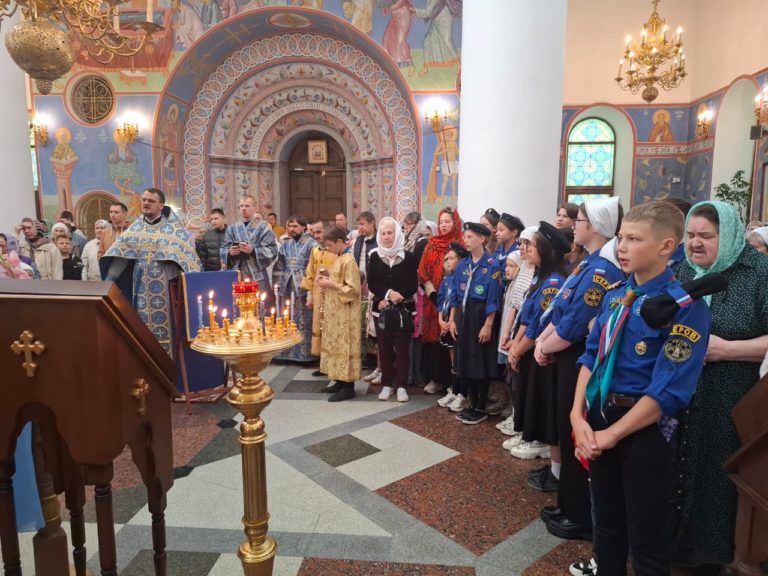В последний день лета настоятель собора иерей Симеон Шестаков совершил молебен для учащихся и педагогов. Богослужение было посвящено началу нового учебного года и традиционно собрало всех членов следопытского отряда.