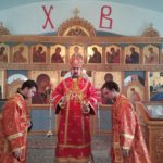 По окончании Божественной литургии епископ Алексий со священниками и клиросом перед иконами праздника пропели стихиры Пасхи, после чего Архипастырь окропил всех молившихся святой водой.