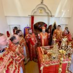 Воскресный день начался с Божественной Литургии на месте разрушенного храма Архангела Михаила с участием детей-воспитанников церковно-приходских школ. В Таинстве Евхаристии приняли участие более 100 человек.