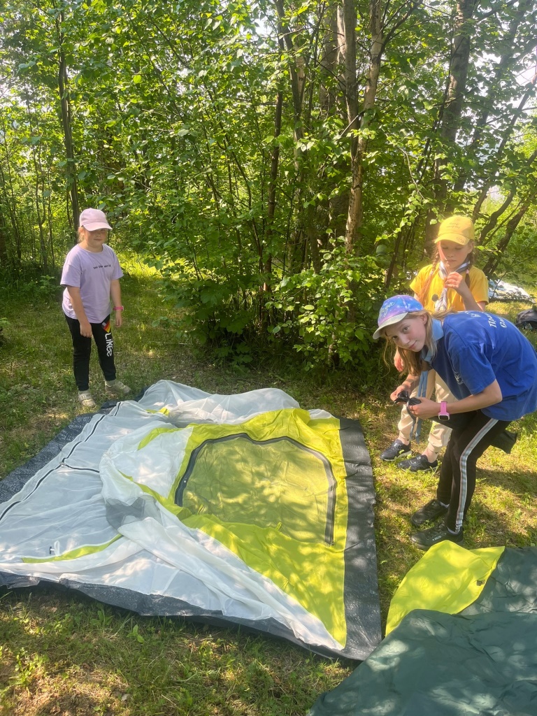 Дальше ребята сами установили палатки и обустроили места для сна. Лагерь разделили на три зоны: для мальчиков, девочек и взрослых.