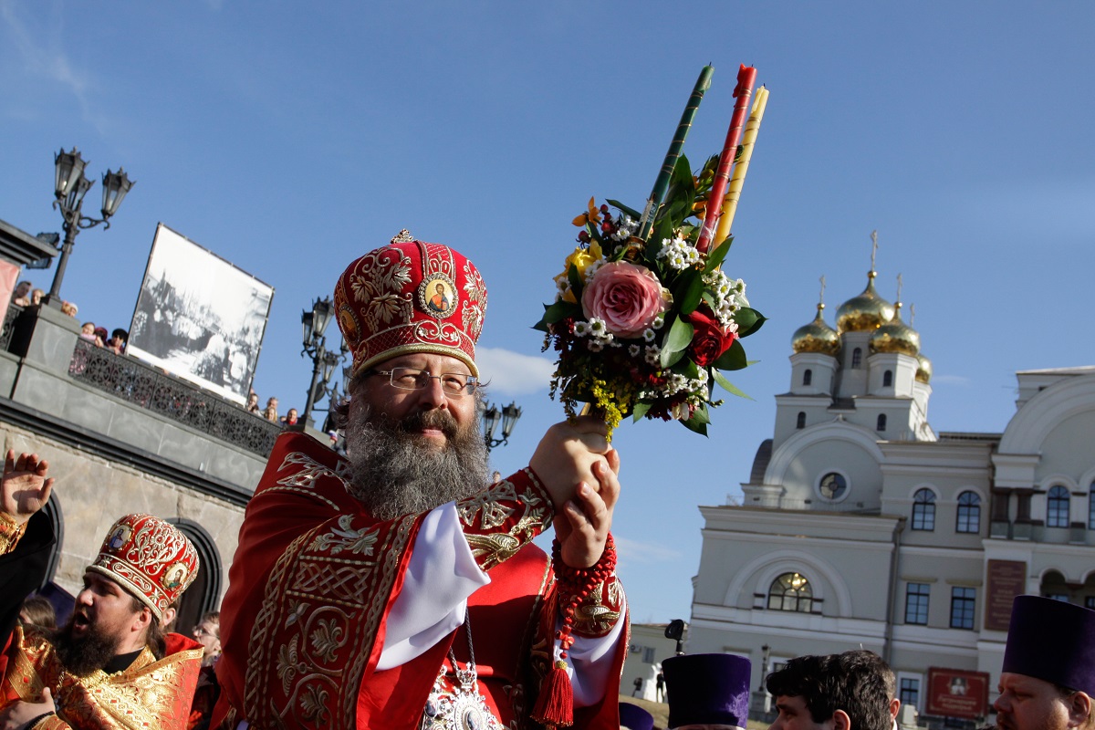 Радостный Пасхальный переход царственного народа Божия не развлечение или только утешение общением, а возможность благодатной силой Божией участвовать и в величественной Славе Синайского Откровения, и в радостном исходе Адама из опустошаемых адовых глубин, но даже и в победоносном шествии спасённых душ, призываемых Творцом: «Приидите, благословенные Отца Моего, наследуйте Царство, уготованное вам от создания мира» (Мф. 25, 34). В это веруя и в Церкви находясь в освящённом литургическом времени, более точно называемом вечностью, мы собираемся вместе, как апостолы Христовы, некогда ангелами собранные со всех концов земли на Богородичную Пасху, составляем собою священное Тело Христа и самим своим существованием свидетельствуем о том, что Христос жив и Его Свет так и не был объят тьмой. «Я есмь Первый и Последний, и живый; и был мертв, и се, жив во веки веков, аминь» (Апок. 1, 17–18) – говорит Победитель смерти Христос. Неся с собою свидетельства Воскресения Христа Жизнодавца, оживотворяя пространство нашего города и его области, мы хотим принести жизнь и в самое его сердце – место главного храма Екатеринбургской митрополии, собора во имя Святой Великомученицы Екатерины. Пусть Благодатный Огонь, который по милости Божией мы ожидаем и который надеемся принести на место строительства кафедрального собора града святой Екатерины, попалит в наших сердцах всё злое и ожесточённое, всё равнодушное и богопротивное. Пусть мир и согласие воцарится в нашем городе, который так нуждается в правде и братской любви. Пусть Пасхальная радость позволит нам прочувствовать единение и любовь, и, обняв друг друга, мы назовём каждого братом и сестрой и в духовном ликовании паки и паки воскликнем: