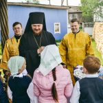 Перед Литургией Преосвященный Алексий пообщался с воспитанниками воскресной школы. Дети поприветствовали Владыку стихотворениями
