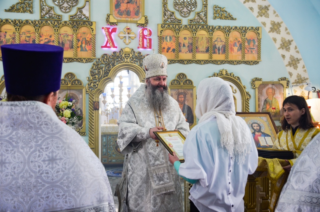 На богослужении владыка вручил благодарственные письма прихожанкам за усердные труды, а так же преподал всем собравшимся архипастырское благословение.