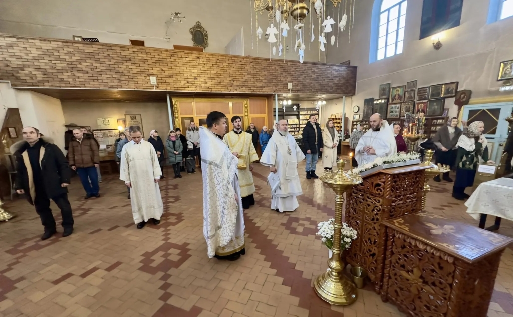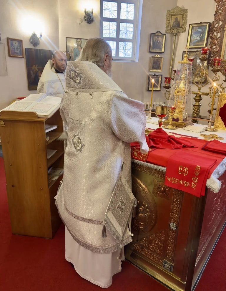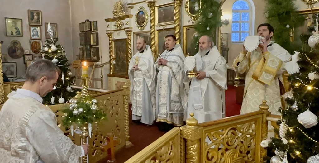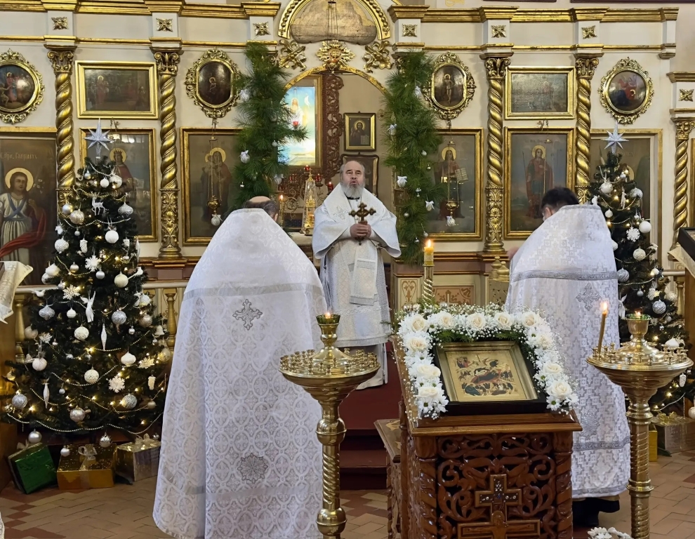 Его Преосвященству сослужили настоятель храма и клирики прихода. Богослужение прошло в атмосфере молитвенного единения, наполненной ожиданием великого праздника Рождества Христова.