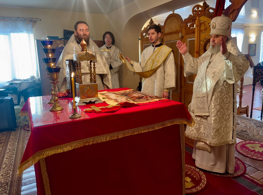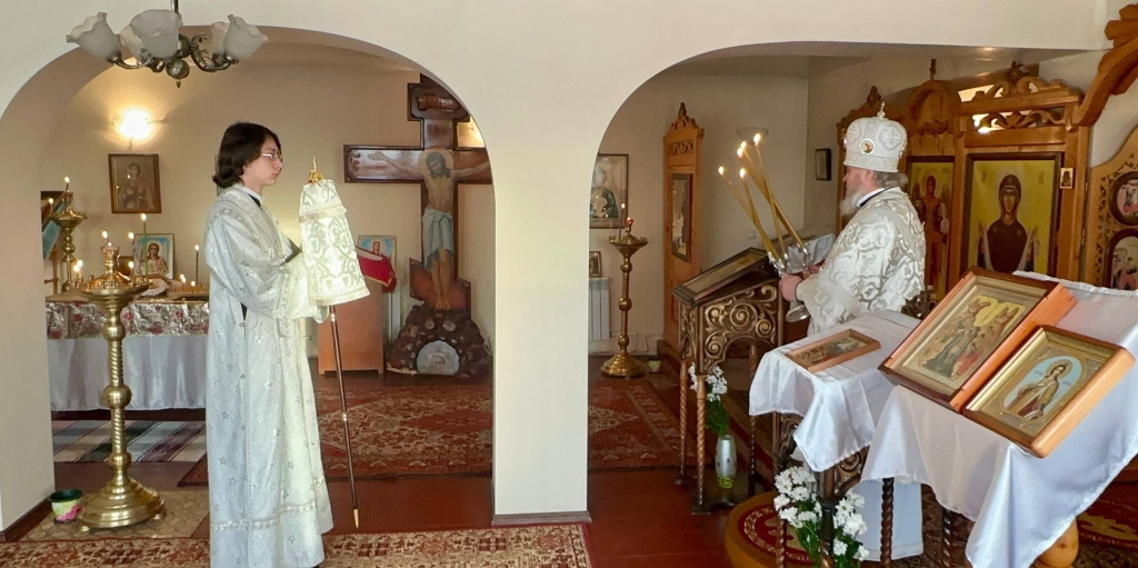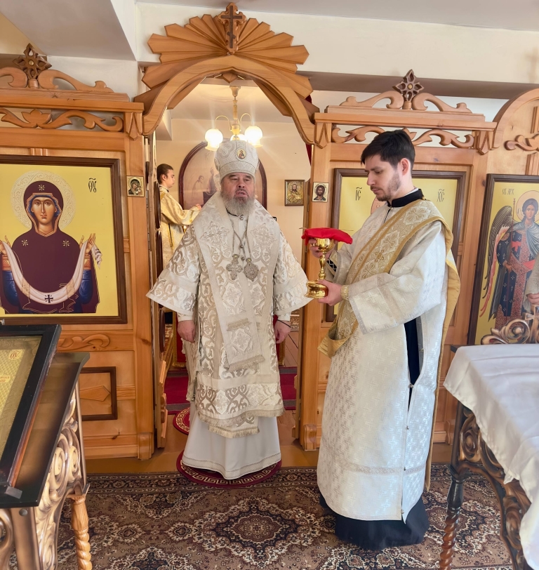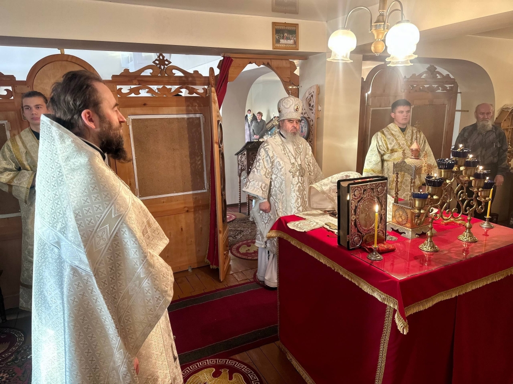 За богослужением Его Преосвященству сослужил настоятель храма — иерей Максим Фомин.
