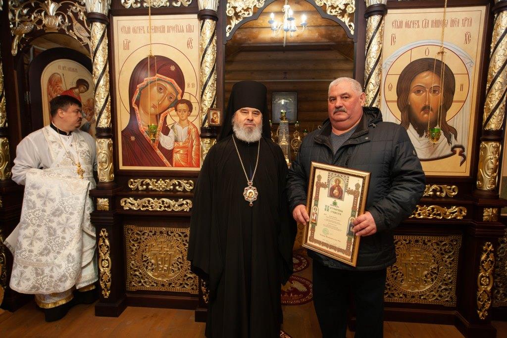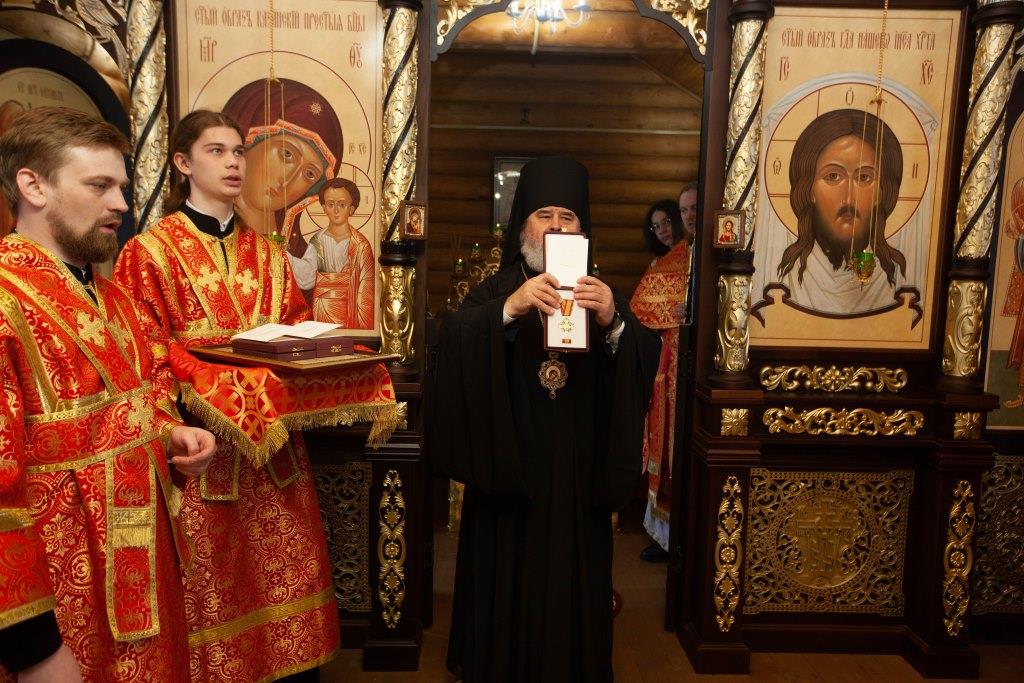 По окончании богослужения произошло торжественное награждение. За усердные труды по строительству храма Указом Святейшего Патриарха Московского и всея Руси Кирилла были награждены: