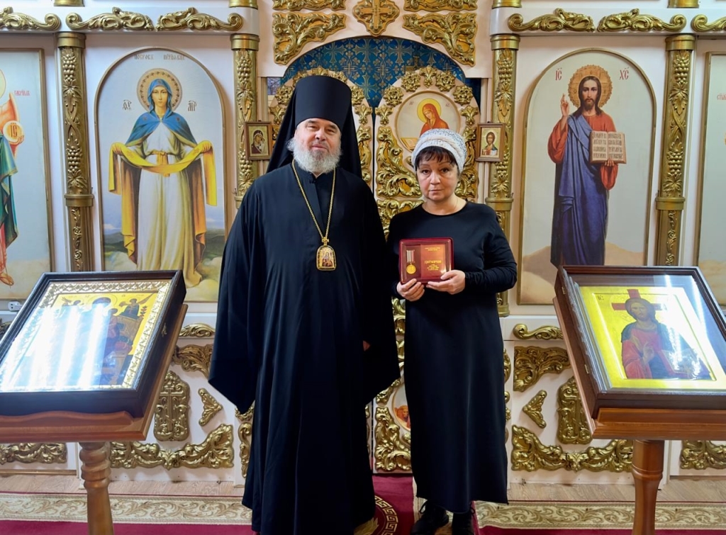 Владыка Феогност наградил медалью Серовской епархии святых мучениц Веры, Надежды, Любови и матери их Софии III степени Винокурову Наталью Александровну — заведующую культурно-массовым отделом МБУК «Централизованная сельская клубная система» пос. Ис за миссионерскую работу по организации благотворительных концертов в честь праздника Покрова Пресвятой Богородицы, средства от которого идут на строительство Храма.