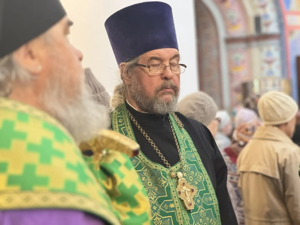 Его Преосвященству сослужили клирики собора.