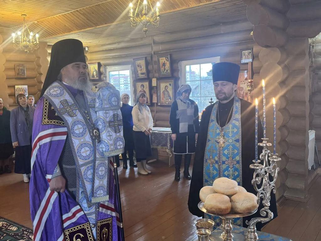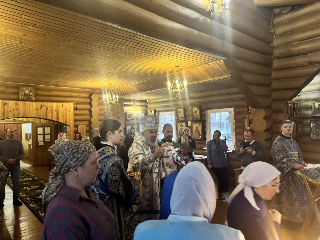 За богослужением Его Преосвященству сослужил настоятель храма — протоиерей Александр Мельников.
