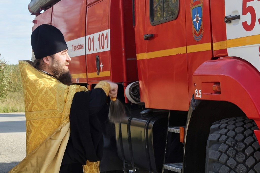 По окончании молебна состоялась торжественная церемония освящения пожарной техники, специально прибывшей к стенам храма. Этот символический акт подчеркивает важность благословения Божия на все труды человека и призван испросить помощи свыше для безопасной и эффективной службы. Освящение машин стало ярким и значимым завершением праздника, оставив в душах всех участников чувство благодати, надежды и духовного единения.