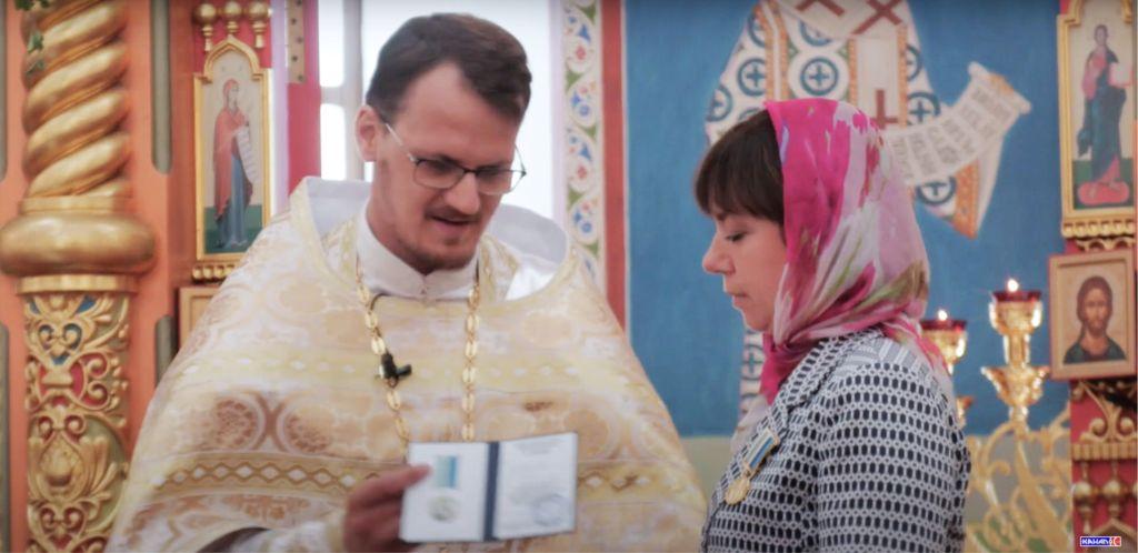СВЯЩЕННИК СИМЕОН ШЕСТАКОВ, НАСТОЯТЕЛЬ КАФЕДРАЛЬНОГО СОБОРА В ЧЕСТЬ ПРЕОБРАЖЕНИЯ ГОСПОДНЯ: «Вручена медаль Нижнетагильской епархии, Серовской епархии Икона Божией Матери «Знамение» Ольге Викторовне Чернецовой, благодаря которой очень много делается, оказывается помощь нашему собору. И хочется и ее поздравить, и поблагодарить все руководство Надеждинского металлургического завода, директора, всех, кто трудится на благо нашего города».