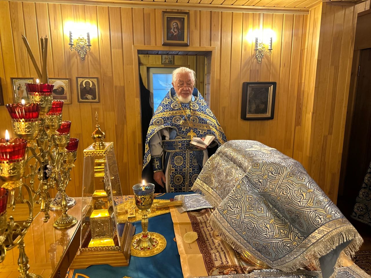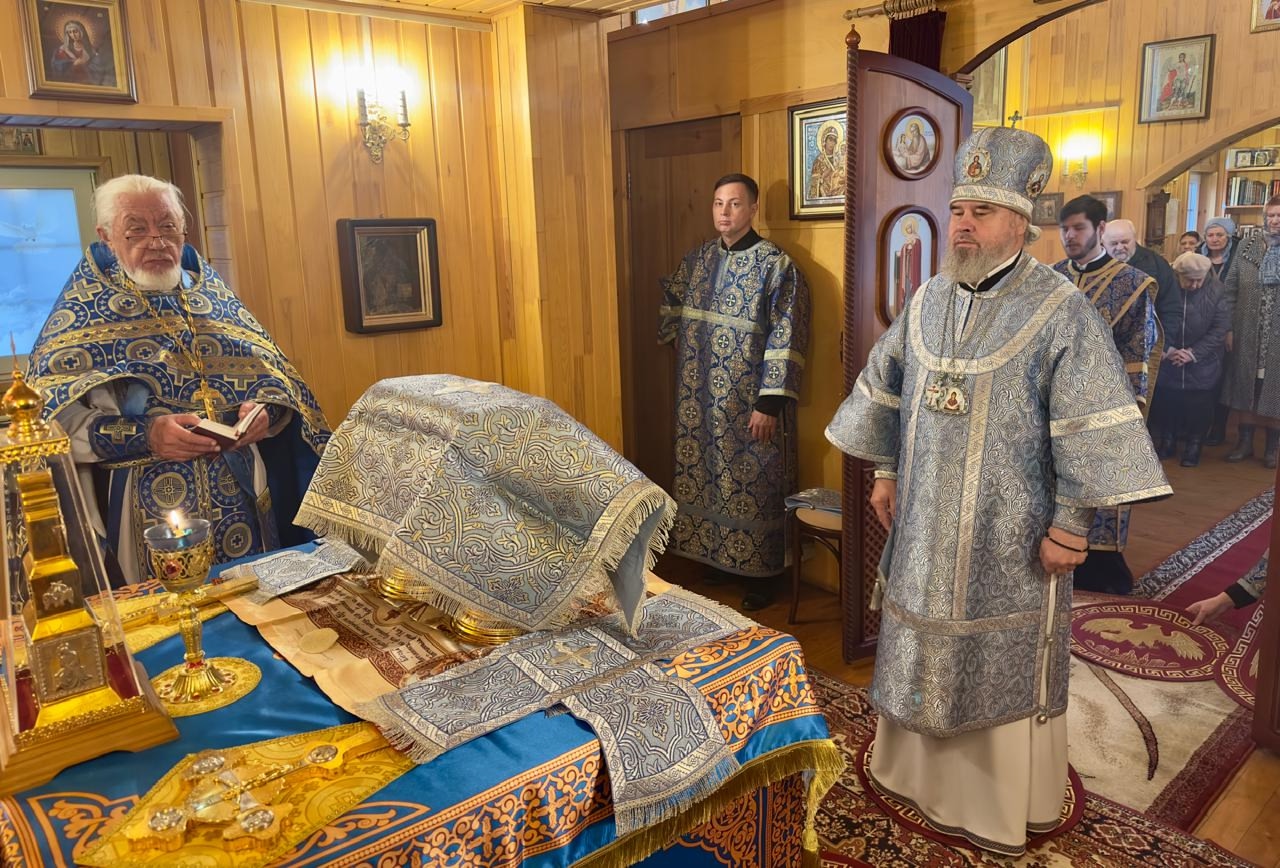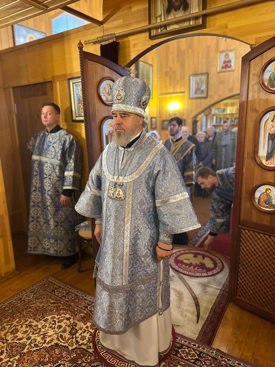 Его Преосвященству сослужил настоятель храма иерей Михаил Голдыч. Богослужение сопровождалось пением приходского хора.