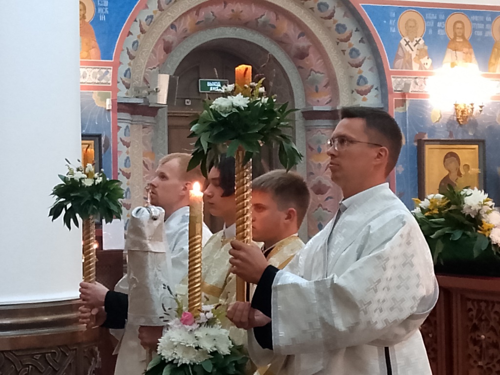 Уже с вечера храм наполнился верующими, пришедшими подготовиться к грядущему торжеству. Праздничное убранство собора, украшенного цветами и зеленью, создавало особую атмосферу предвкушения великого праздника. Церковный хор, исполняя праздничные песнопения, создавал гармоничное сопровождение службы.