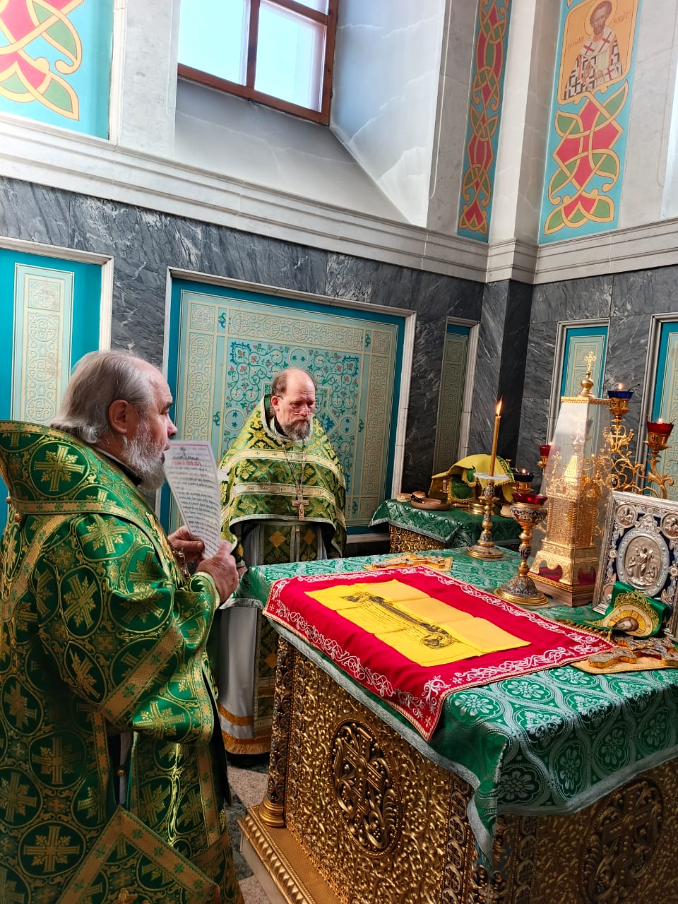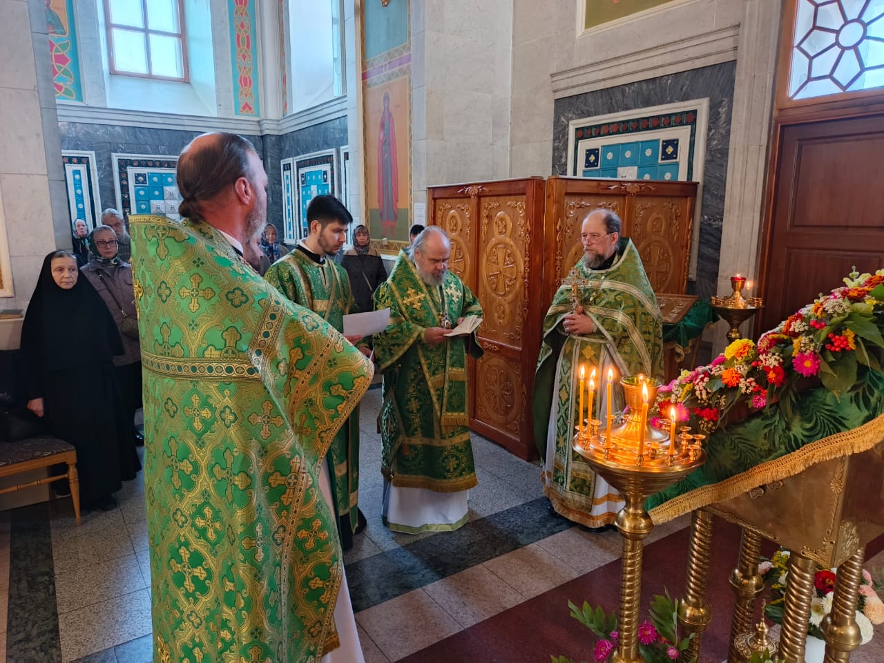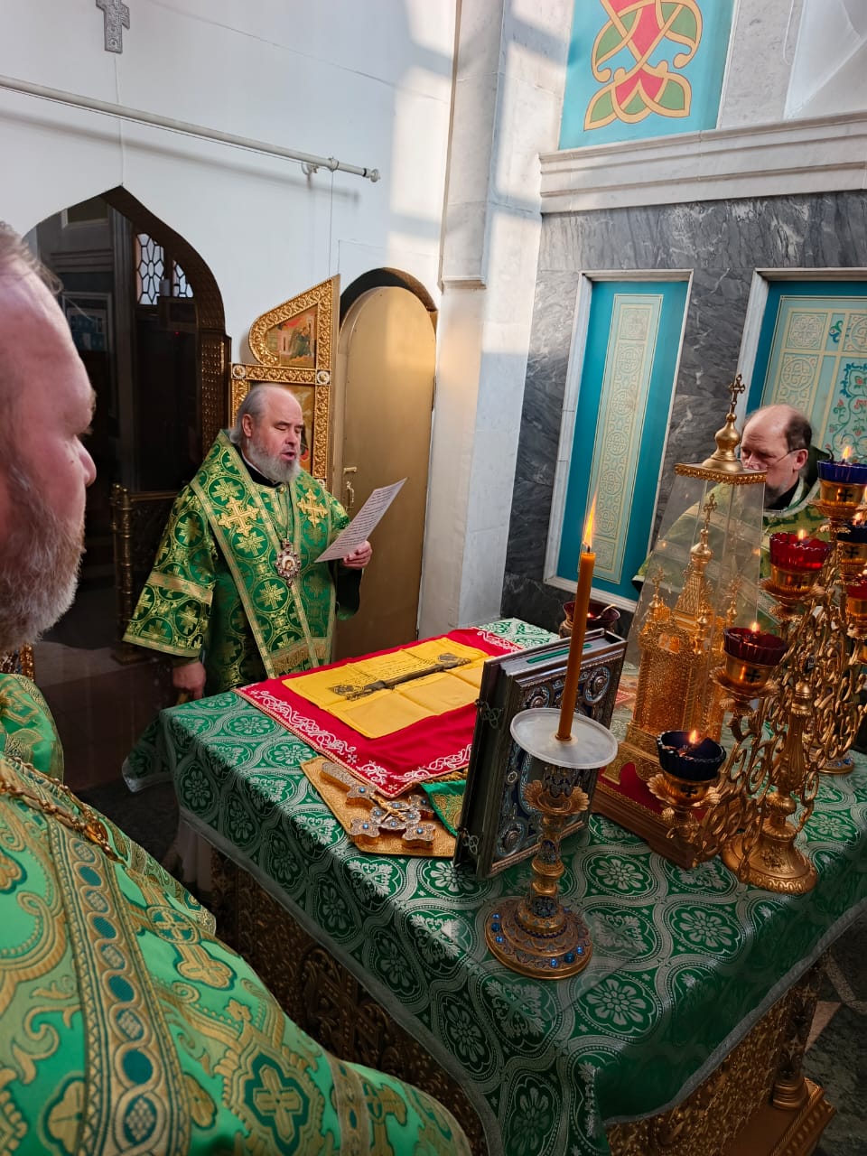 Богослужение состоялось в приделе, освящённом в честь святого Александра Невского. Его Преосвященству сослужили клирики храма.