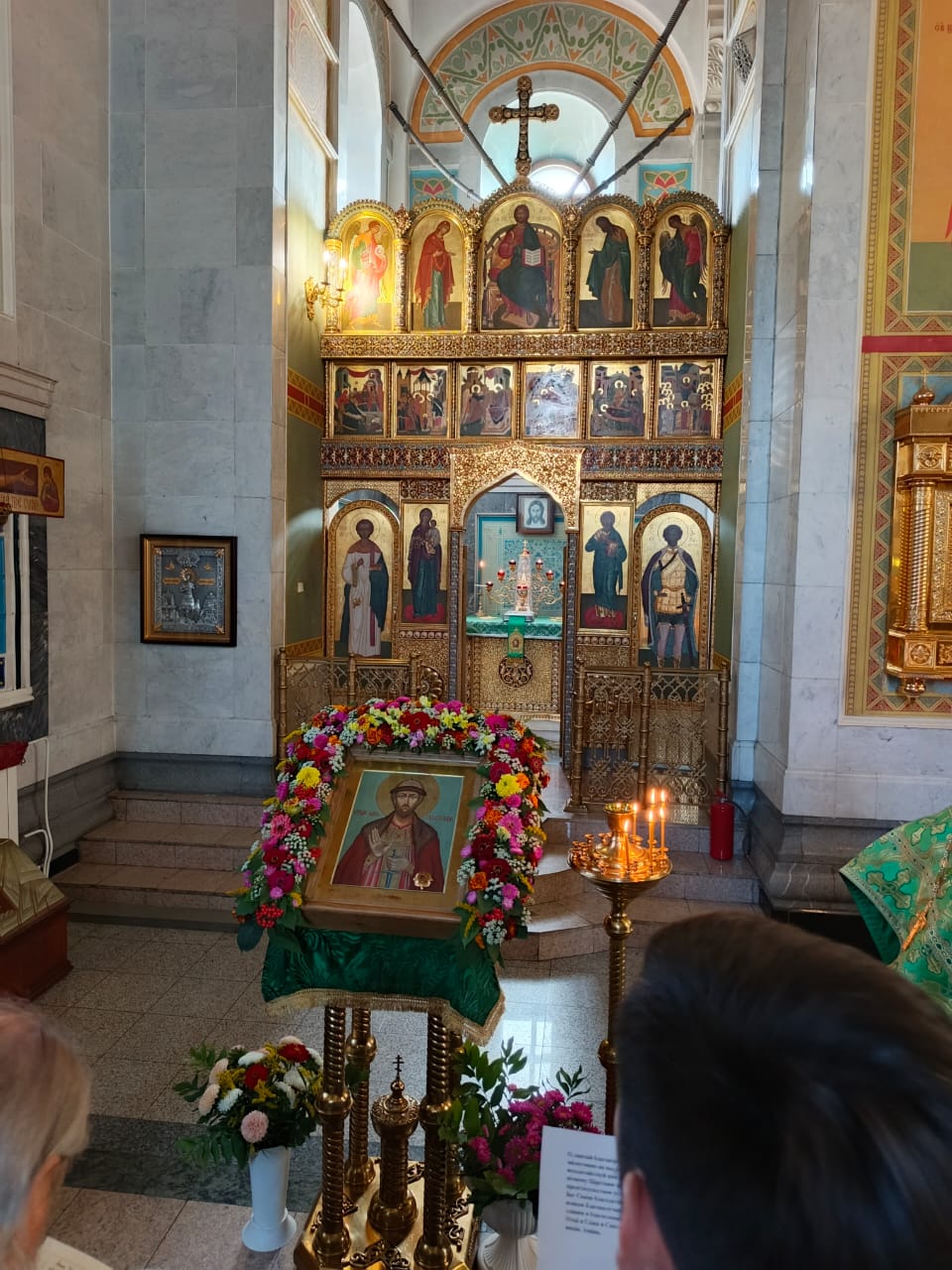 За Литургией молились многочисленные прихожане и гости храма. После прочтения Евангелия владыка Феогност обратился к собравшимся с архипастырским словом, в котором напомнил о жизненном подвиге святого князя Александра, его верности православной вере и самоотверженном служении Отечеству.