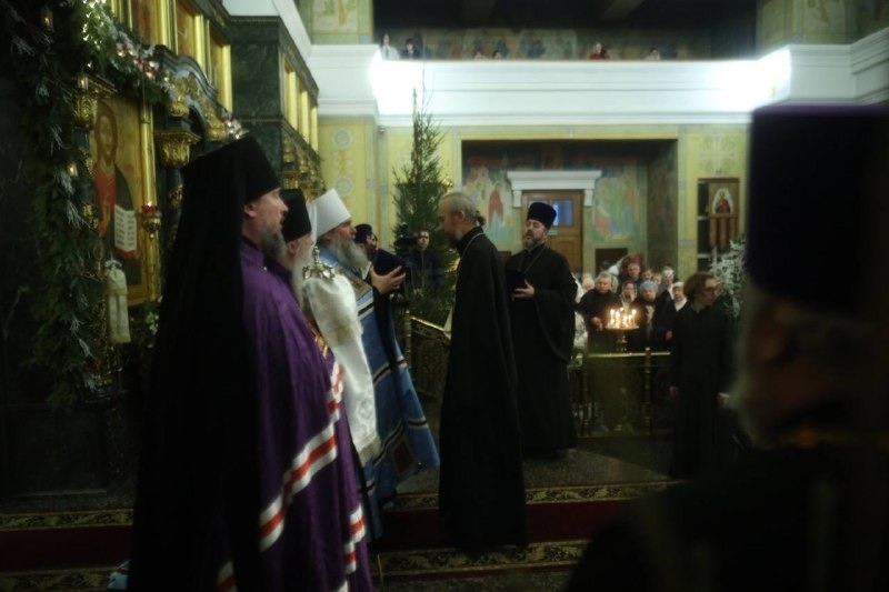 Завершилось богослужение торжественным моментом: все священнослужители вышли из алтаря на середину храма. Перед иконой Рождества Христова «едиными усты, единым сердцем» были вознесены тропарь, кондак и величание празднества.