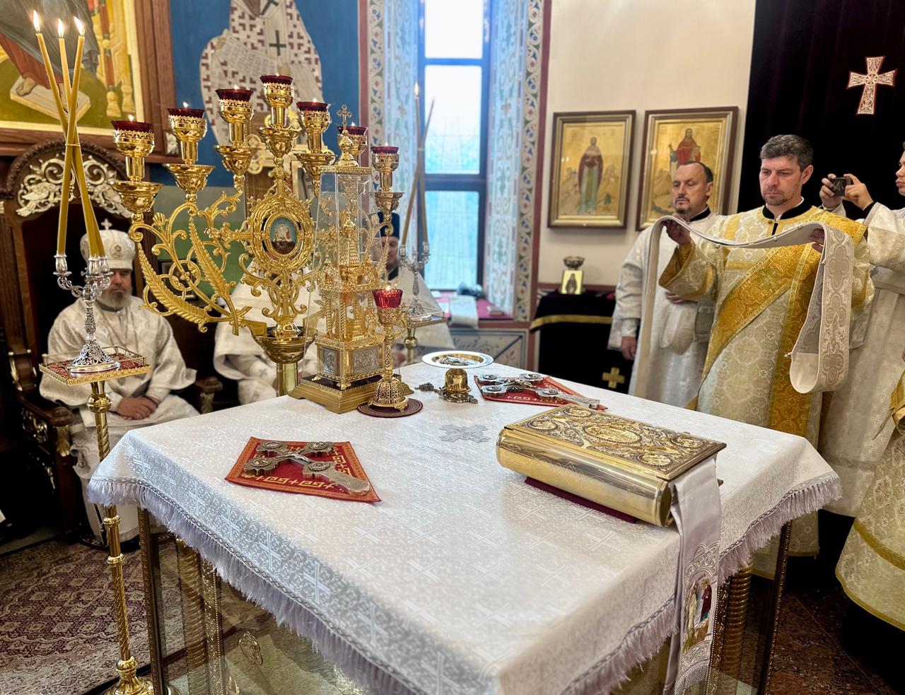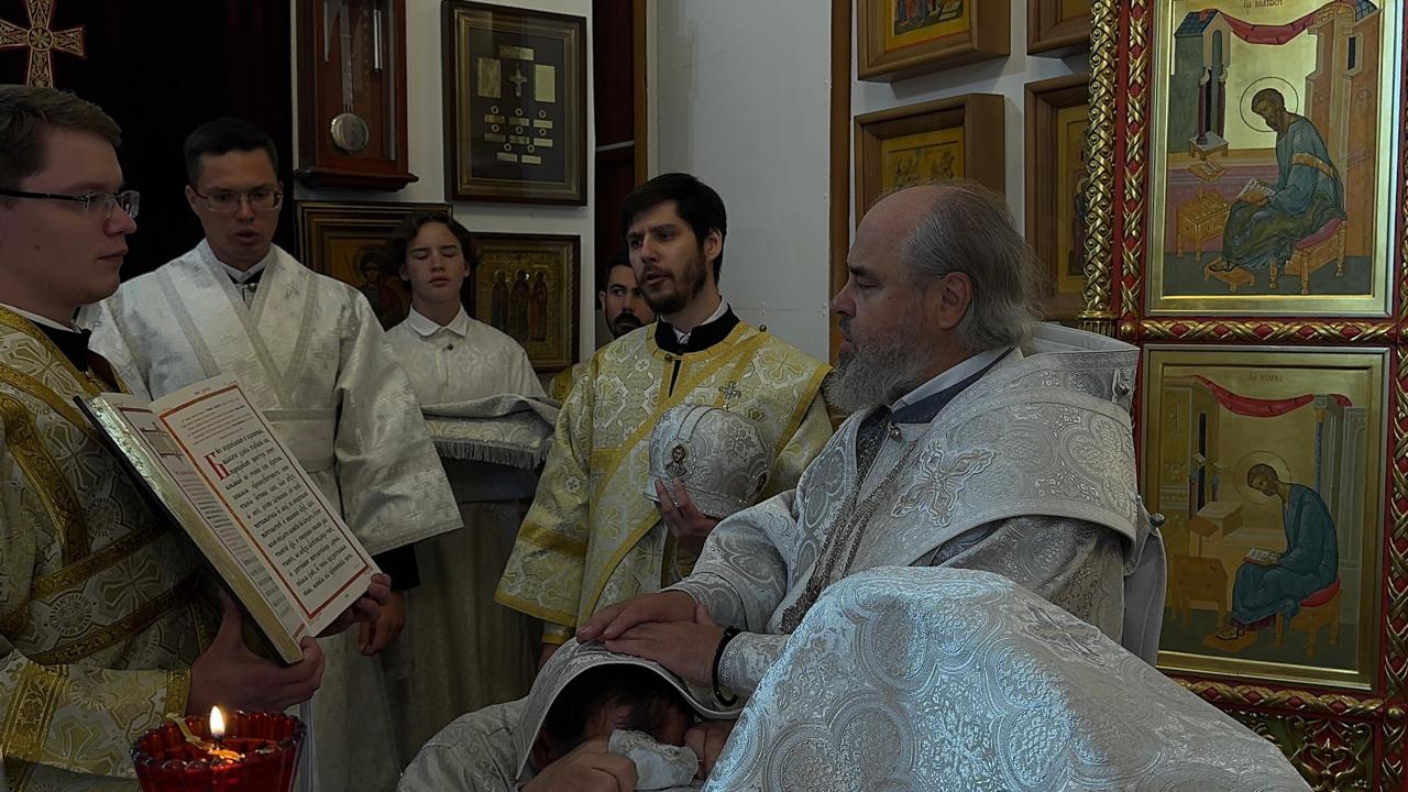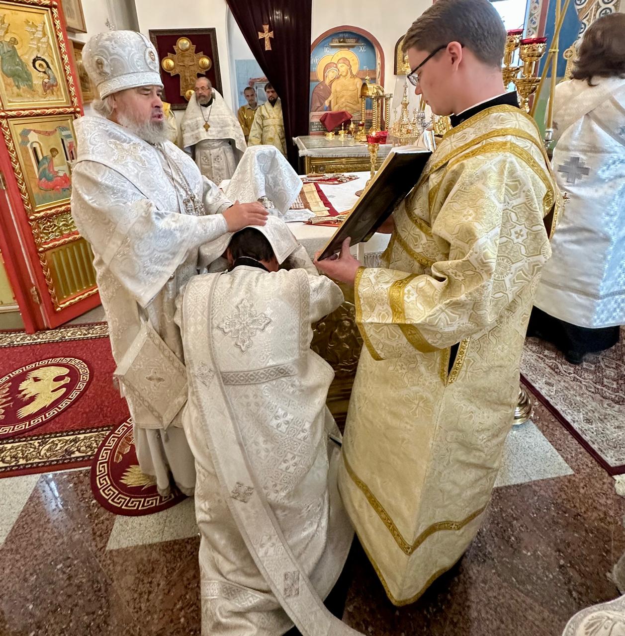 В ходе архиерейского богослужения была совершена хиротония диакона Вячеслава Кондрина, клирика храма святых апостолов Петра и Павла города Североуральска, во пресвитера.