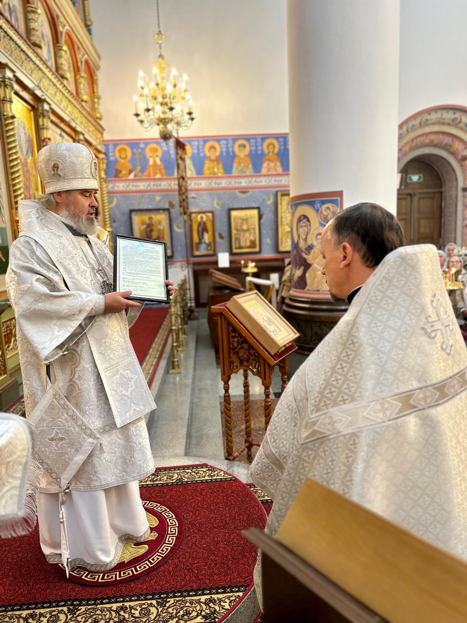 По окончании Божественной литургии владыка Феогност обратился к собравшимся с архипастырским словом, в котором поздравил новопоставленного иерея с важным событием в его церковном служении и преподал всем благословение.