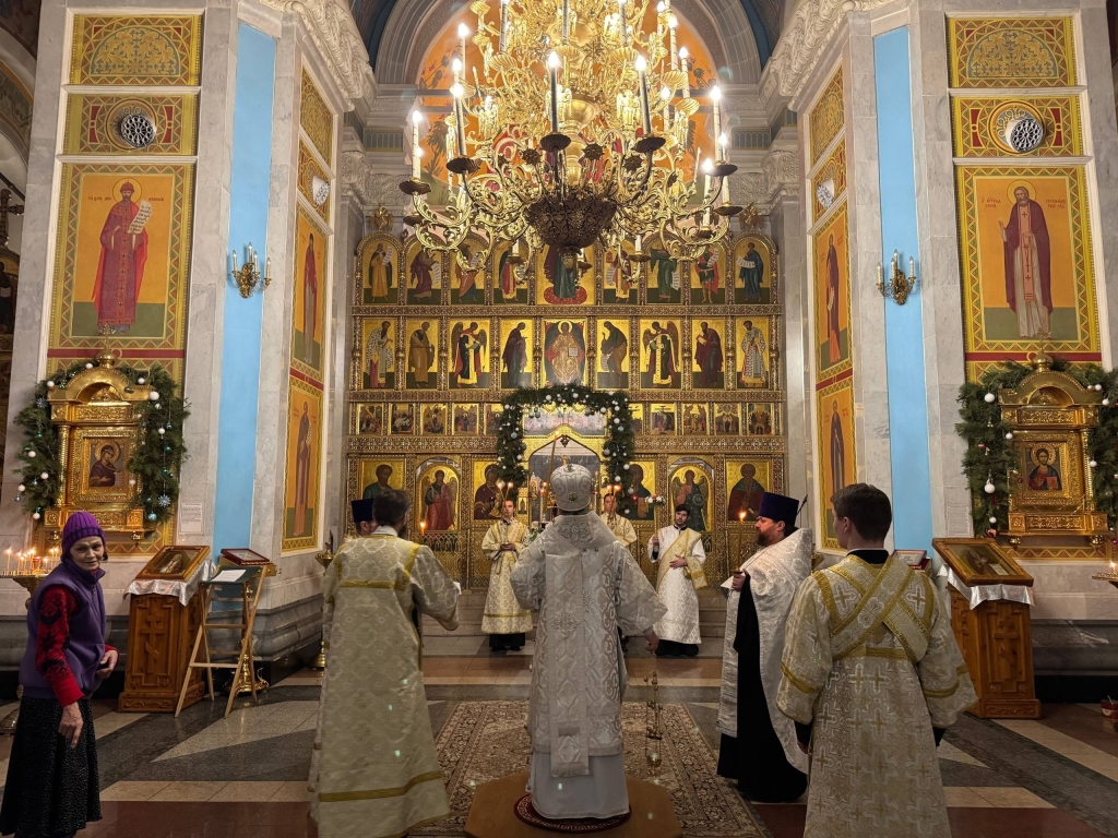 Богослужение прошло в особой духовной атмосфере: собор был наполнен верующими, пришедшими разделить с архипастырем молитвенное торжество в преддверии великого праздника. Торжественные песнопения, возносившиеся в стенах храма, подчёркивали величие наступающего события — Крещения Господа Бога и Спаса нашего Иисуса Христа.