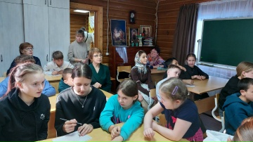15 марта в Воскресной школе Трёхсвятительского прихода города Нижняя Тура состоялся занимательный урок, приуроченный ко Дню православной книги. В мероприятии приняли участие не только воспитанники школы, но и гости — ребята из Социально‑реабилитационного центра для подростков.