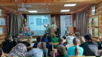 Во втором задании участники разбирали, какую информацию о храме может дать книга: форму здания, вид и количество куполов, их цвет, форму креста на куполе. Все эти элементы символизируют святость церкви и главенство Иисуса Христа. Полученные знания ребята применили на практике, анализируя фотографии Трёхсвятительского храма, представленные в презентации. Кроме того, участники вспомнили о предназначении паперти, околовратных и надвратных икон, а также о правилах церковного этикета при входе в храм.