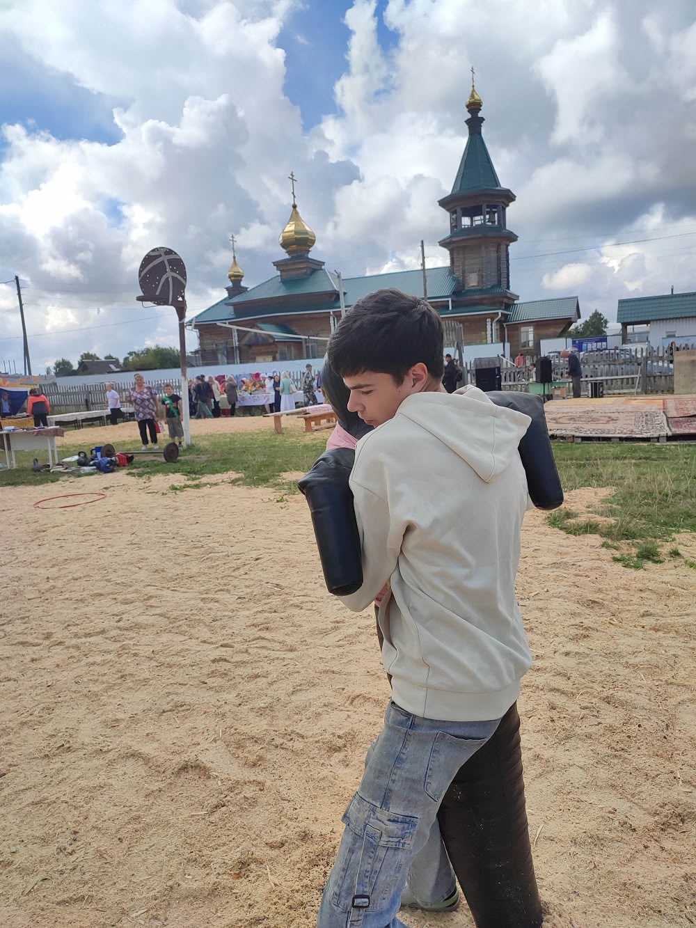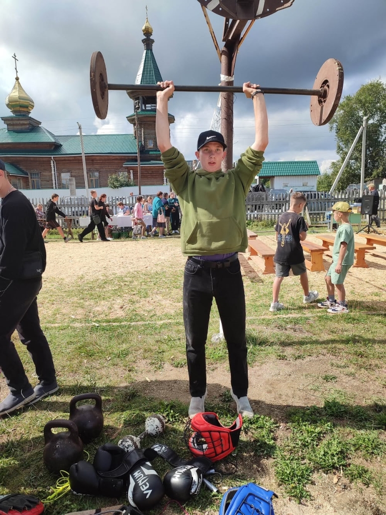 Приходская Воскресная школа п. Восточный Сосьвинского округа в субботу 16 августа 2025 г. организовала на Преображенской ярмарке важные для воспитания защитников Отечества конкурсы по молодецкой удали. Ребята — волонтеры провели соревнования по боксерской и борцовской подготовке, по поднятию гирь 16, 24 и 32 кг, а также штанг, по подтягиванию на турниках и отжиманиям, прыжкам на скакалках и вращениям обручей за 1 мин., по разборке автомата и набивке 30 учебных патронов.