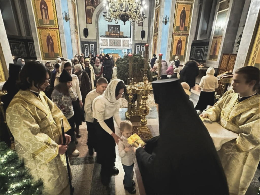 В знак рождественской радости и благословения владыка поздравил всех присутствующих с великим праздником и вручил каждому прихожанину сладкий подарок.