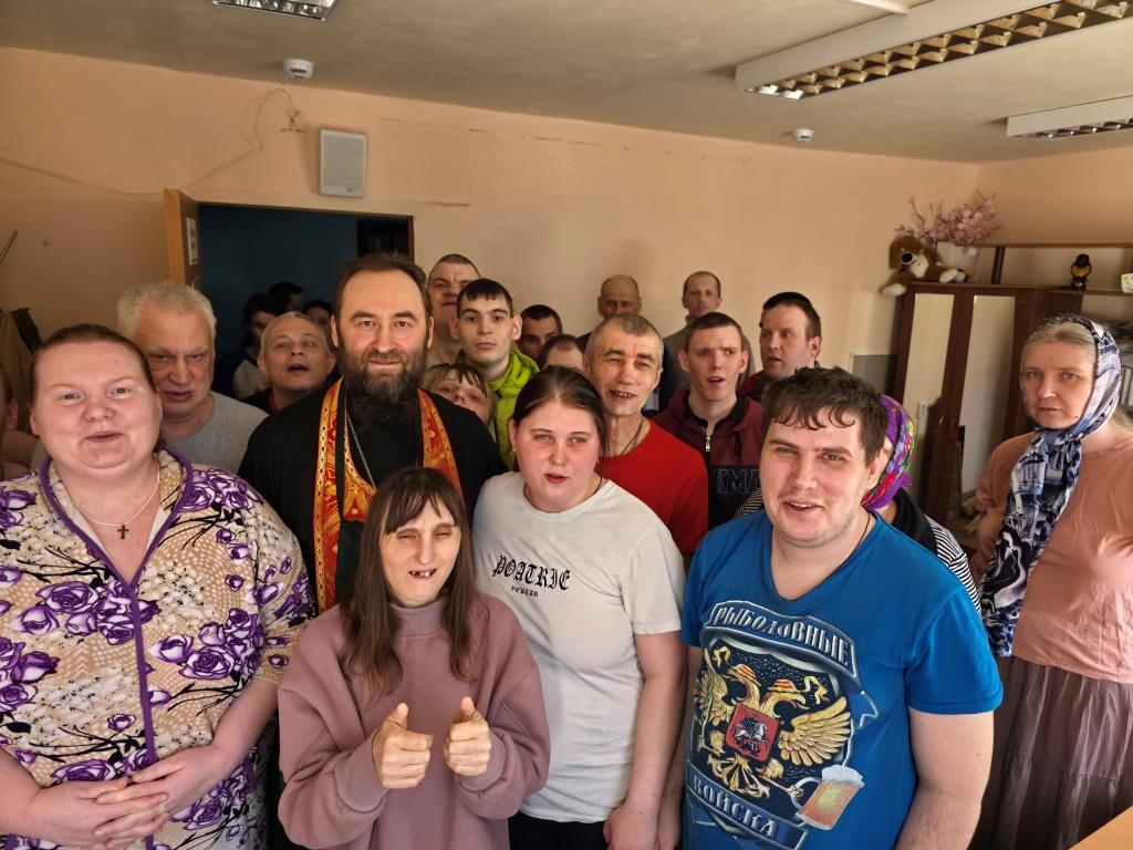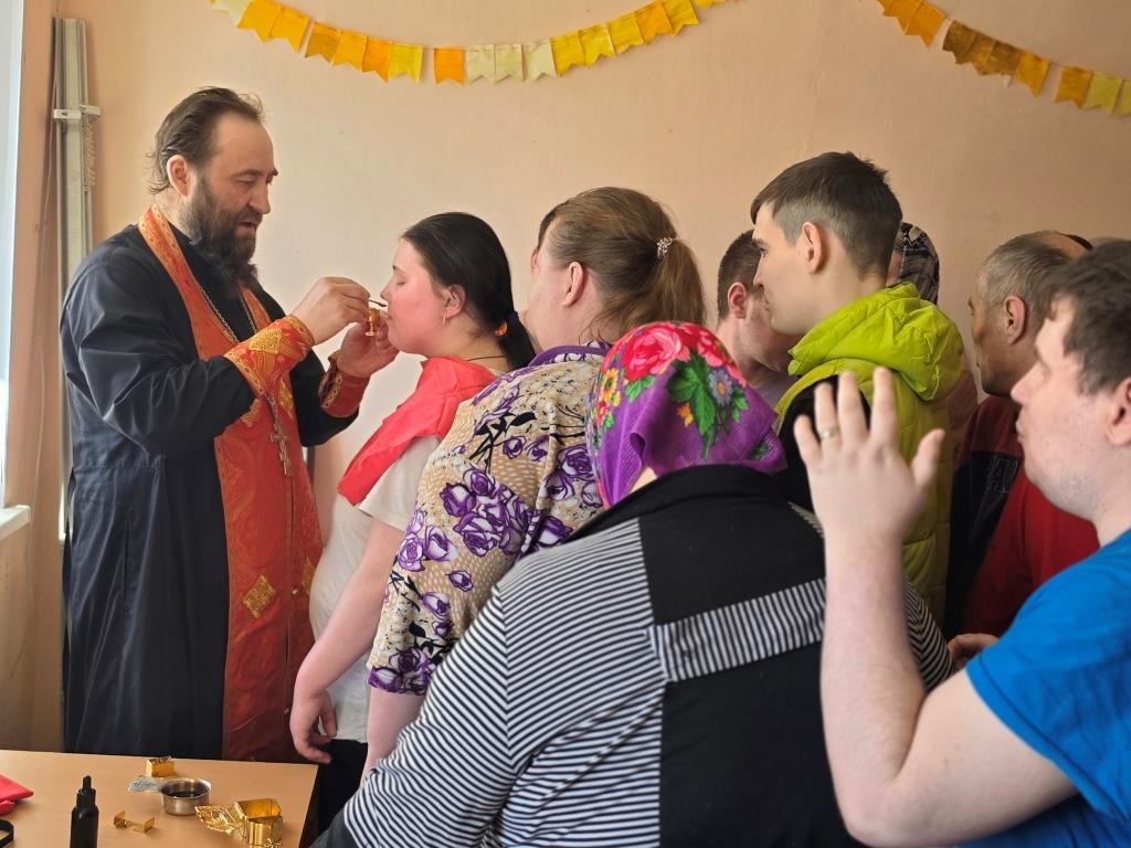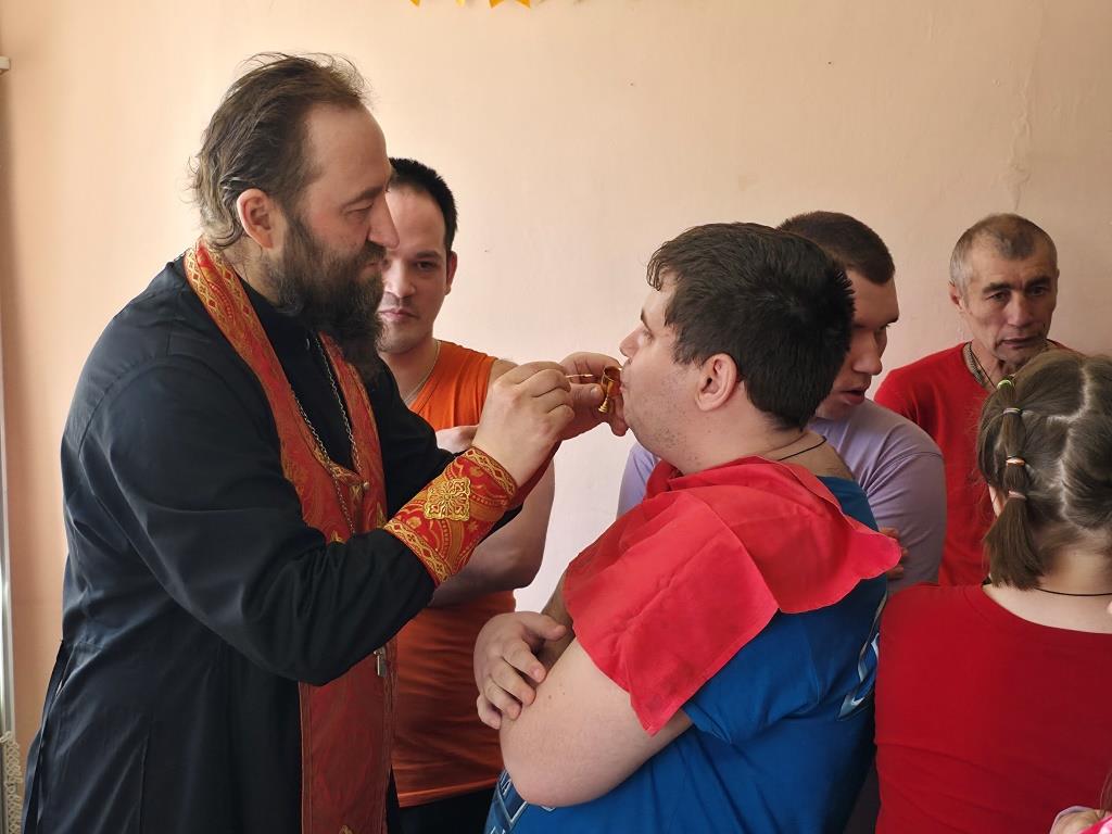 В ходе встречи иерей Максим отслужил праздничный молебен. Для многих жителей интерната это стало первой в жизни возможностью исповедаться и причаститься Пречистых Христовых Таин.