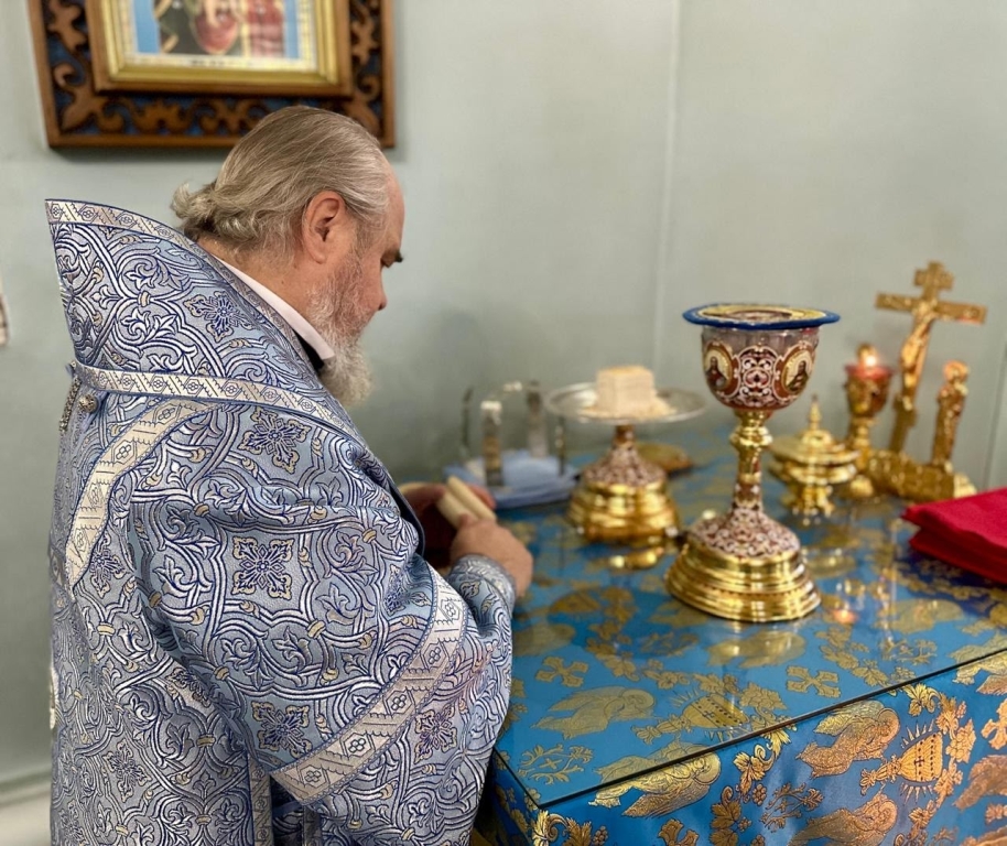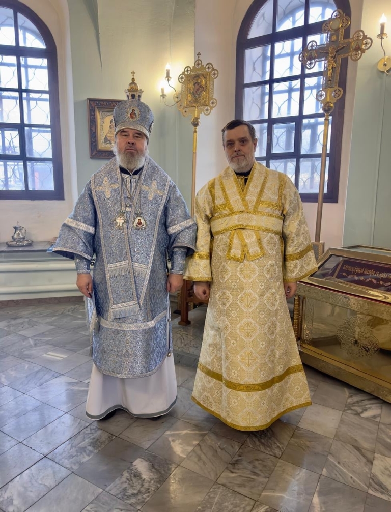 За Литургией архипастырю сослужил настоятель собора иерей Виктор Эльрих.