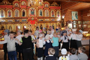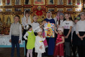 В честь праздника ребята читали стихи, пели песни, участвовали в конкурсах. Объединившись в две команды, старшие и младшие, показали свою сплочённость при изготовлении солнышка и цветов (при этом многие взрослые воспитанники помогали малышам выполнять трудные, но интересные задания). В самом конце ребята украсили Казанскую икону Божией Матери цветами. Праздник получился интересным и познавательным.