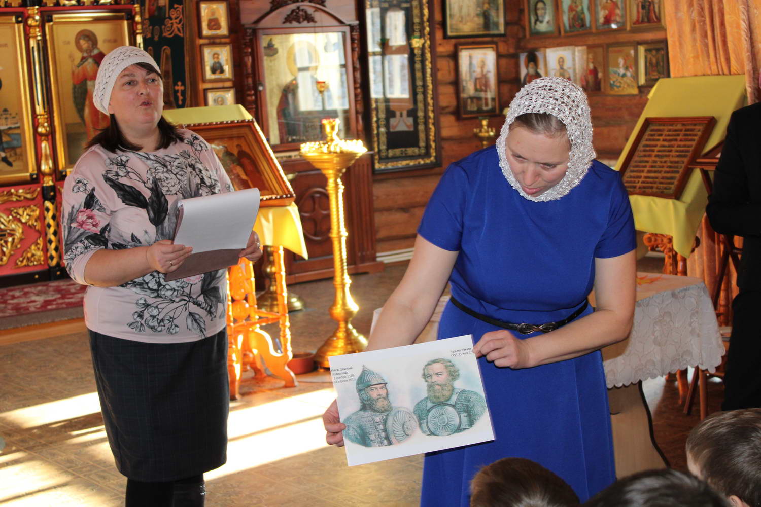 Ребята узнали удивительную историю появления иконы в городе Казани 440 лет назад, какую роль Она сыграла в освобождении Москвы от поляков во время Смуты, как помогла во время Великой Отечественной войны отстоять города-герои Ленинград (ныне Санкт-Петербург), Москву и Сталинград.