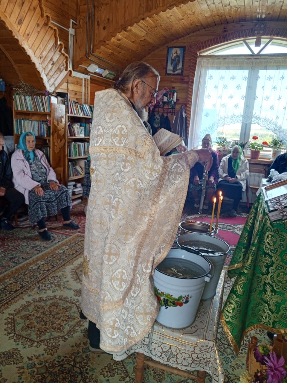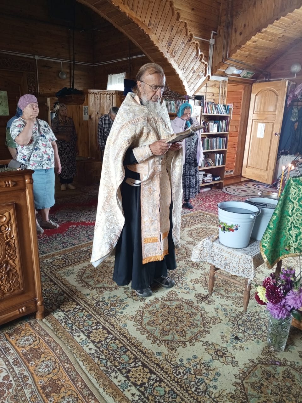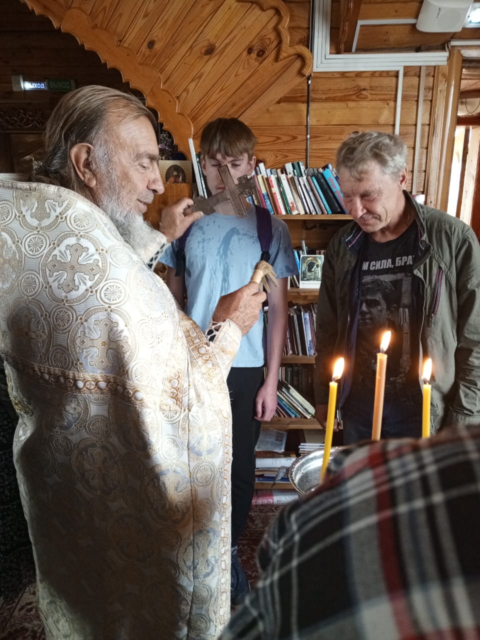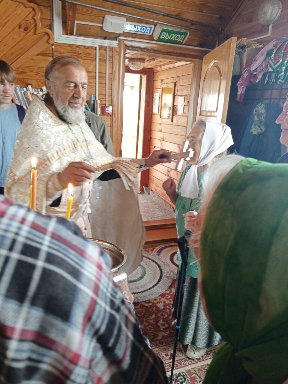 Прихожан было 15 человек. Иерей Владимир Краснопёров поздравил всех с праздничным днём и окропил каждого из прихожан святой водой.
