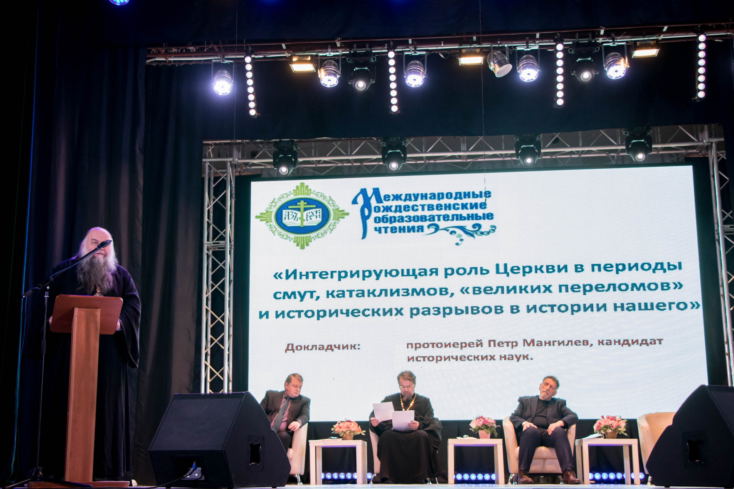 — протоиерей Петр Мангилев — кандидат исторических наук, проректора по научной работе, доцент кафедры церковно-исторических и гуманитарных дисциплин Екатеринбургской духовной семинарии, доцент кафедры Истории России исторического факультета Уральского федерального университета, настоятель храма святых равноапостольных Кирилла и Мефодия г. Екатеринбурга. Тема доклада: «Интегрирующая роль Церкви в периоды смут, катаклизмов, «великих переломов» и исторических разрывов в истории нашего Отечества».