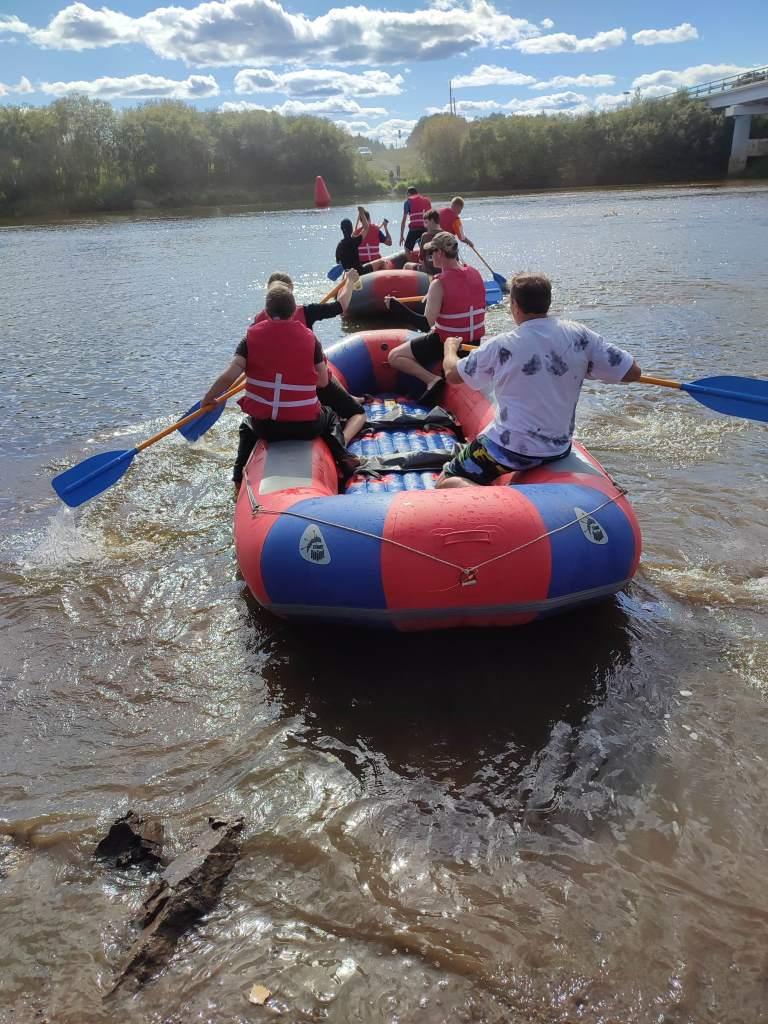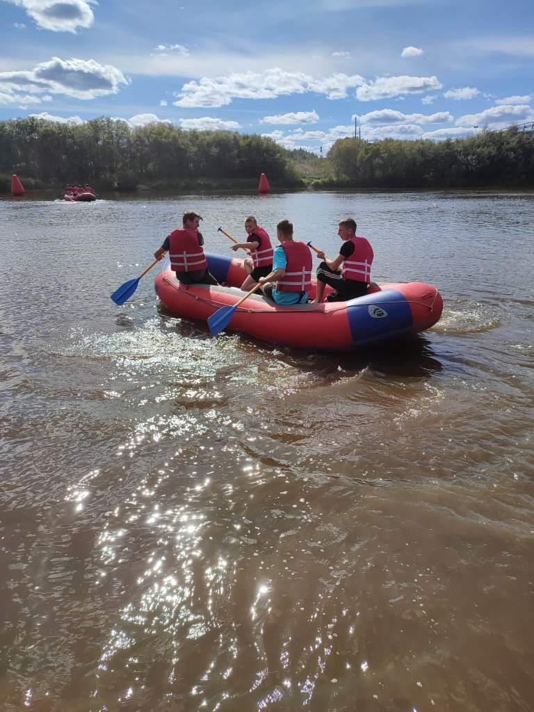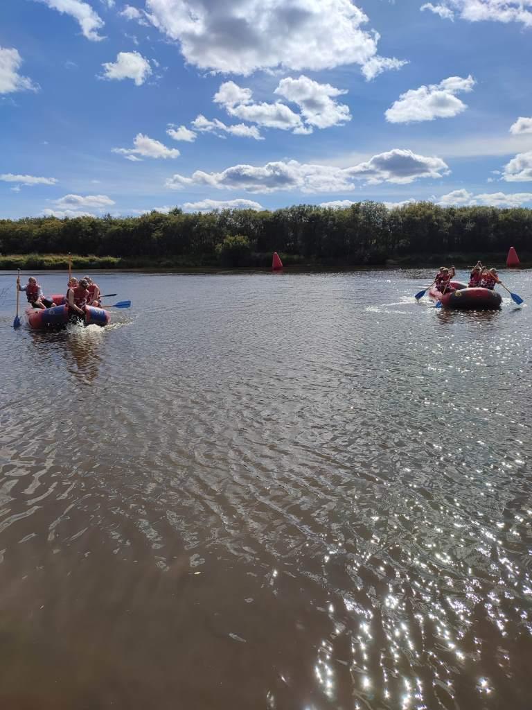 23 АВГУСТА 2025 г. Воскресная школа прихода во имя Новомучеников п. Восточный, на каникулах, приняла участие в организации мастер-классов и радостных соревнований по РАФТИНГУ, т. е. по спортивной гребле на специальных лодках – рафтах.