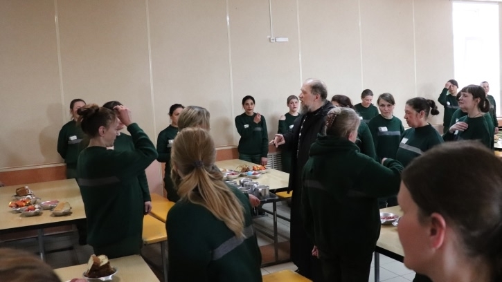 Завершилось торжество праздничным чаепитием в столовой учреждения. Мероприятие было организовано совместно администрацией колонии и священником Евгением при поддержке прихожан храма апостола и евангелиста Иоанна Богослова. Продукты для чаепития были приобретены на пожертвования верующих.