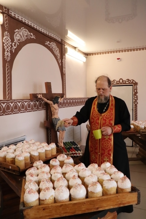 Духовное окормление осуществлял иерей Евгений Калашников настоятель храма в честь апостола и евангелиста Иоанна Богослова г. Краснотурьинска. В праздничный день он освятил приготовленные куличи и яйца, которые затем были розданы всем осуждённым.
