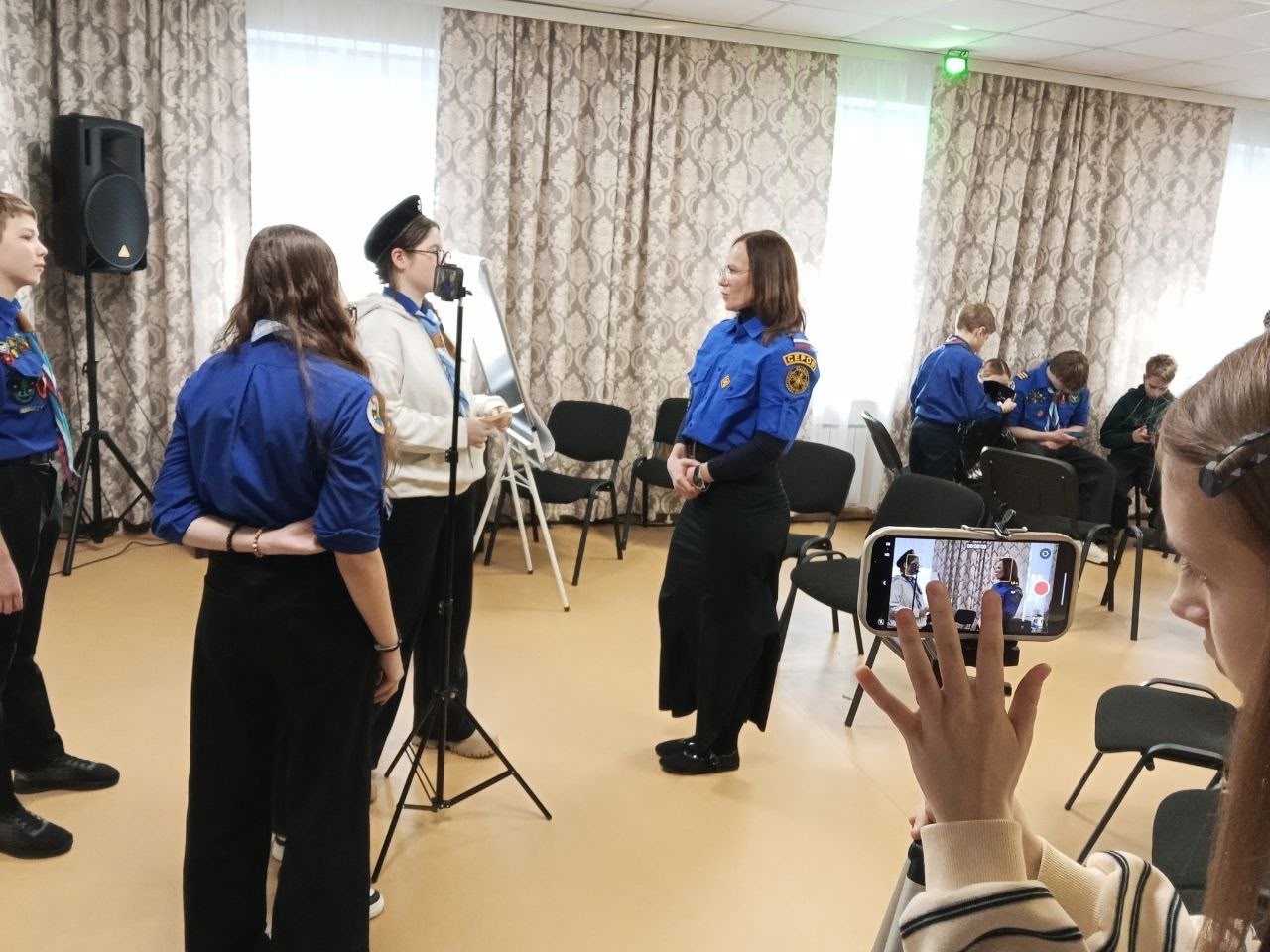 После теоретической части следопыты разделились на две команды и перешли к практике. Ребята попробовали себя в разных ролях интервьюеров, операторов, репортёров.