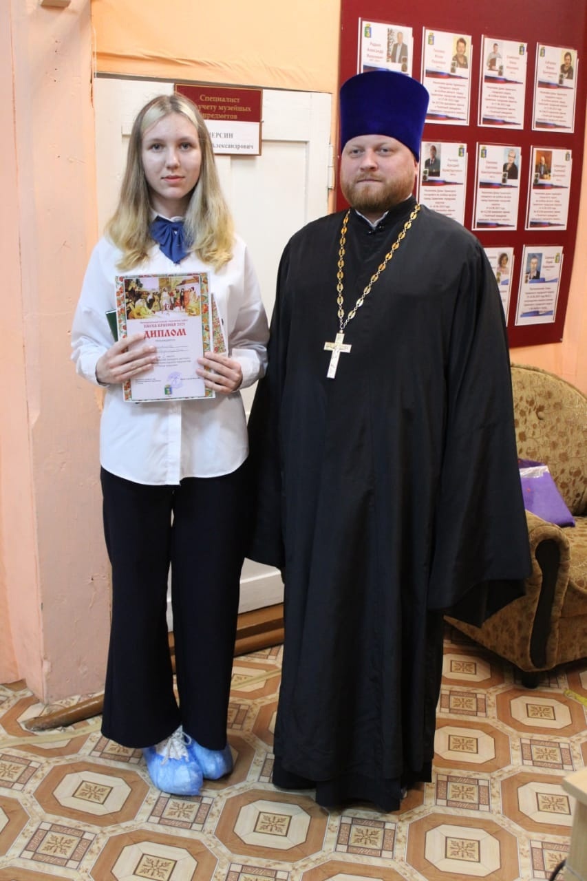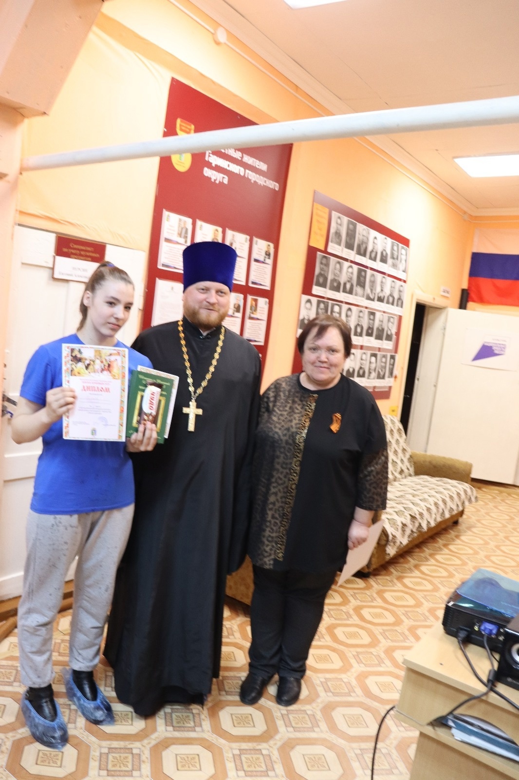 На торжественном мероприятии по подведению итогов конкурса присутствовал почётный гость, настоятель прихода во имя свт. Николая Чудотворца п. Сосьва иерей Сергий Михалёв. Священник наградил победителей дипломами 1,2,3 степени и ценными подарками. Другим участникам конкурса отец Сергий вручил сертификаты и сладкие призы.
