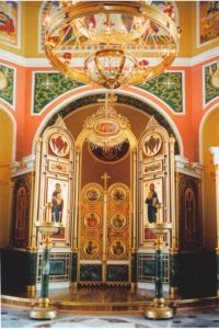 Храм маленький, но уютный. Иконостас изготовлен из металла, украшен уральским камнем – змеевик.